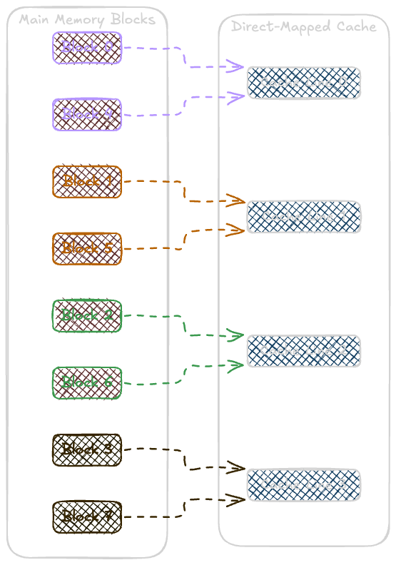 Direct-Mapped Cache: Each block of main memory maps to exactly one