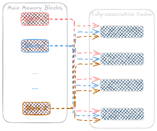 Fully Associative Cache: Any block of memory can be placed in any cache line