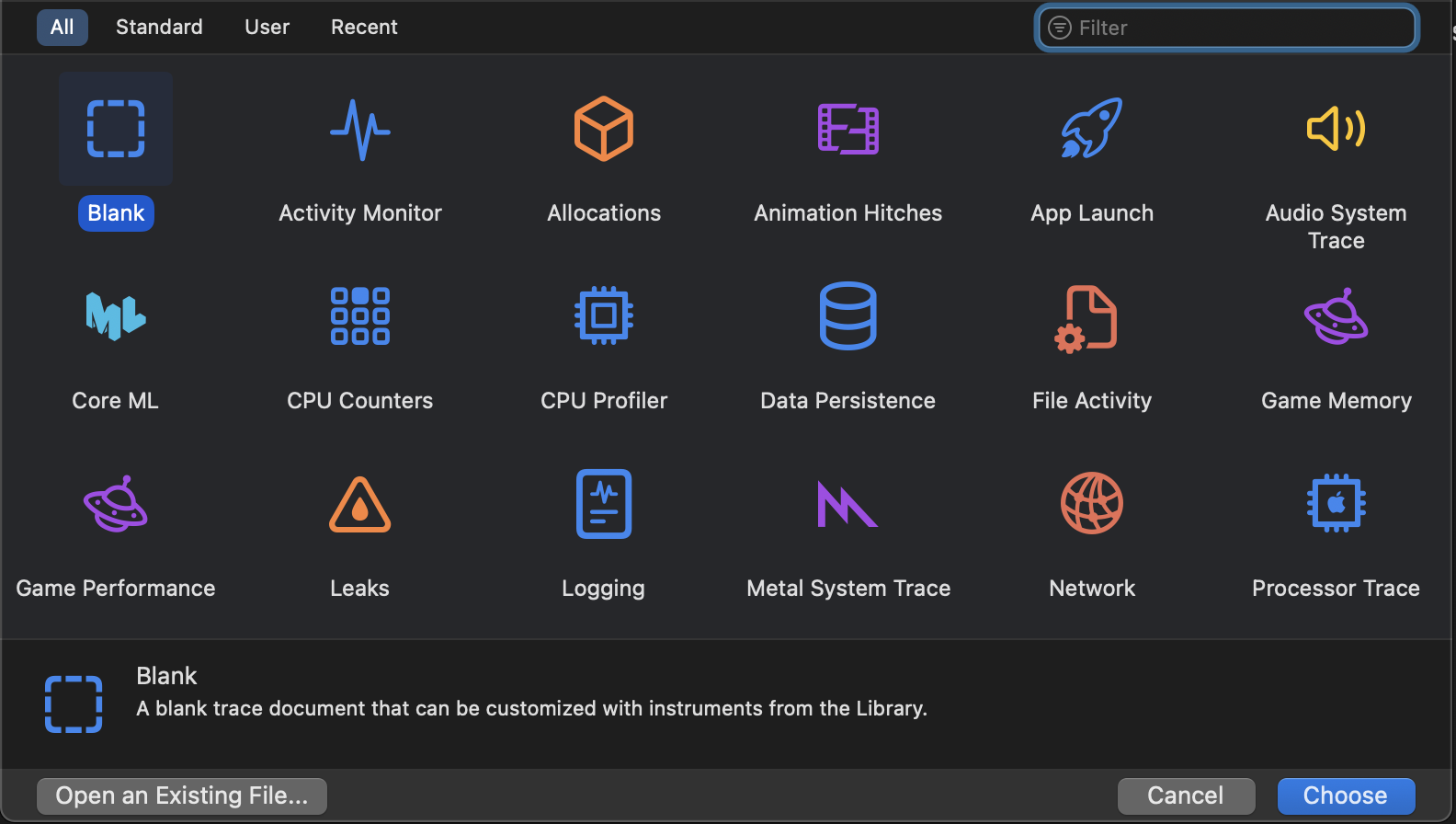 Open Instruments (via Xcode → Open Developer Tool → Instruments
